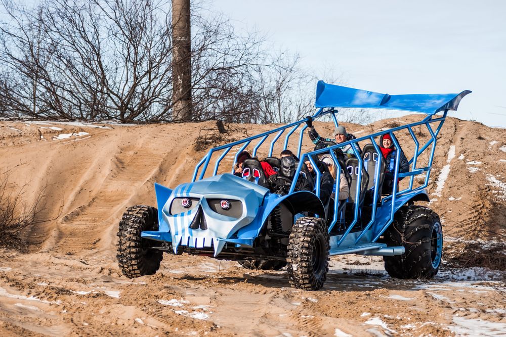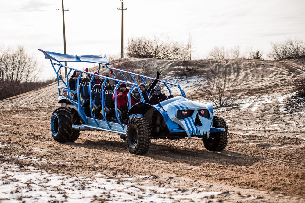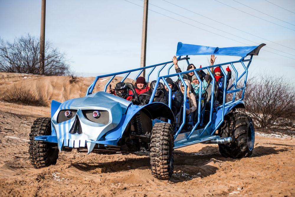 Мощь, стиль, экстрим, восхищение! Новинка! Монстр багги – уникальное в своем роде, самое большое в мире, созданное для получение удовольствия и адреналина! Мощнейший двигатель (около 500ста лошадиных сил) с высоким крутящимся моментом, специально разработанная подвеска высокой проходимости, 11 мест оборудованных всеми необходимыми современными средствами безопасности, уникальный стиль (мы так и не определились это «бэтмобиль» или «безумный макс»). Пустынное багги, которое позволит Вам и всей вашей большой компании, испытать неподдельные настоящие эмоции! Наш профессионал–водитель предоставит Вам право выбрать режим поездки – от хардкор драйва до лайт версии! Вы смельчак и любитель экстрима – бронируйте монстр багги и станьте одним из первых в Украине, кто воспользовался этим уникальным развлечением!